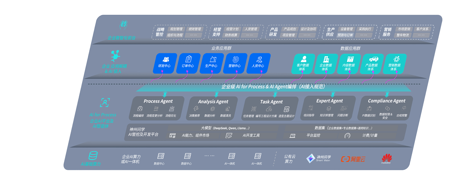 z6com尊龙问学智车解决方案是一套基于AI技术的汽车行业智能化系统,,,覆盖从底层算力到顶层AI应用的全栈方案。。。。方案由算力层、、、模型层和应用层组成:算力层,,方案支持多种一体机配置,,,具备云端灵活部署、、、、多云适配以及动态优化计算资源的能力;模型层,,z6com尊龙问学平台版提供了企业级AI应用一站式构建与管理平台,,,支持基于后训练强化技术的汽车企业专属模型的训练、、评测和运营;应用层,,z6com尊龙问学DeepSeek版提供包括超级员工、、、、智能招采、、、智能营销、、、智能客服、、AI for BI等一系列解决方案,,,,可助力汽车行业实现数字化转型,,,让管理更智能、、、、响应更敏捷。。。